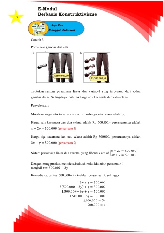 Harga tiga kacamata dan satu celana adalah Rp 500.000, persamaannya adalah