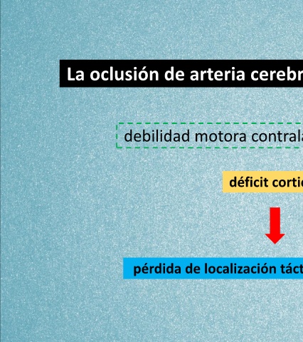 La oclusión de arteria cerebral anterior debilidad motora contralateral de la pierna y el hombro déficit cortical pérdida de localización táctil al estimulo bilateral