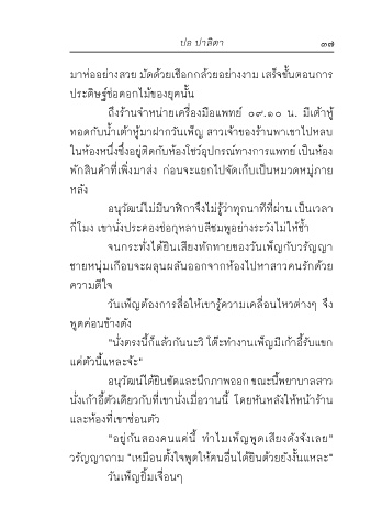 จนใกล้เวลาเก้าโมงเขาซื้อดอกกุหลาบสีชมพู ราคา "อยู่กันสองคนแค่นี้ ท�าไมเพ็ญพูดเสียงดังจังเลย"