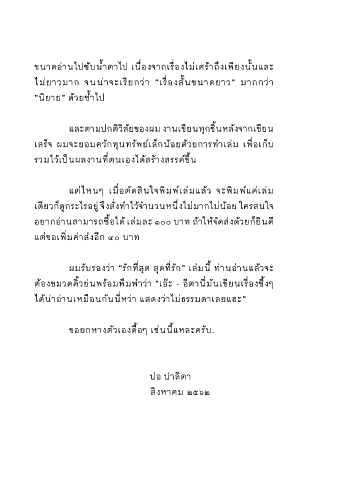 อยากอ่านสามารถซื้อได้ เล่มละ ๑๐๐ บาท ถ้าให้จัดส่งด้วยก็ยินดี รักที่สุด สุดที่รัก