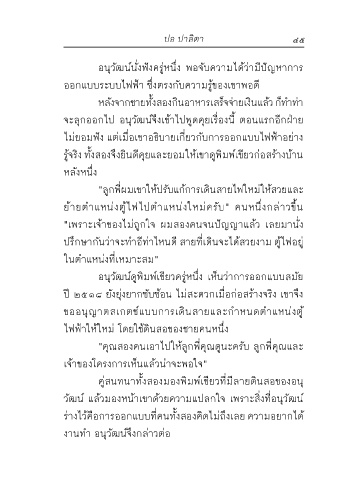 อนุวัฒน์พยักหน้าช้าๆ ไม่พูดอะไรอีก แต่ยังคงความ ปรึกษากันว่าจะท�าอีท่าไหนดี สายที่เดินจะได้สวยงาม ตู้ไฟอยู่