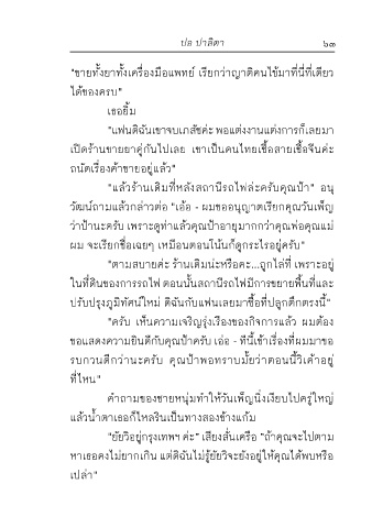 เขาพยักหน้าแทนค�าตอบ เธอกวักมือเรียกเด็กในร้าน "ครับ เห็นความเจริญรุ่งเรืองของกิจการแล้ว ผมต้อง