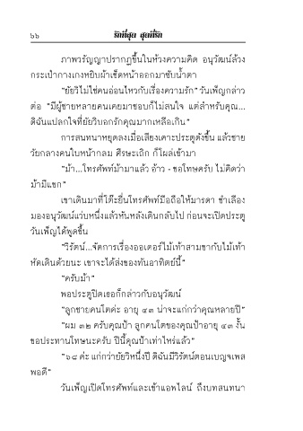 ภาพวรัญญาปรากฏขึ้นในห้วงความคิด อนุวัฒน์ล้วง กับวรัญญาเธอปัดเลื่อนหน้าจออยู่นานพอสมควร แสดงว่าไม่