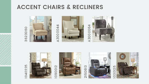 ACCENT CHAIRS & RECLINERS 3623060 A3000044 A3000064 1040225 1090012 2150613 1030125
