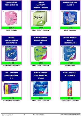 Distribuidora P.R.O. 7 Tel.: 0351-458-8927 E-Mail: distribuidorapro@hotmail.com
