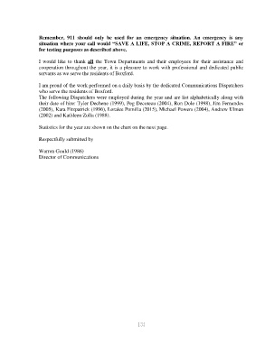 I am proud of the work performed on a daily basis by the dedicated Communications Dispatchers