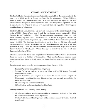 The Boxford Police Department experienced a transition year in 2016. The year started with the