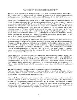 The 2015-16 fiscal year was one of innovation and change in the Masconomet Regional School District.