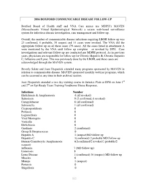 2016 BOXFORD COMMUNICABLE DISEASE FOLLOW-UP