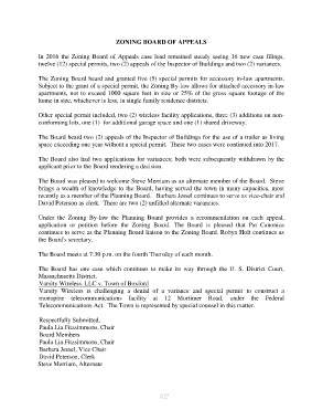 In 2016 the Zoning Board of Appeals case load remained steady seeing 16 new case filings,