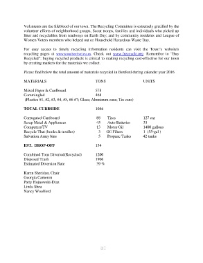 Volunteers are the lifeblood of our town. The Recycling Committee is extremely gratified by the