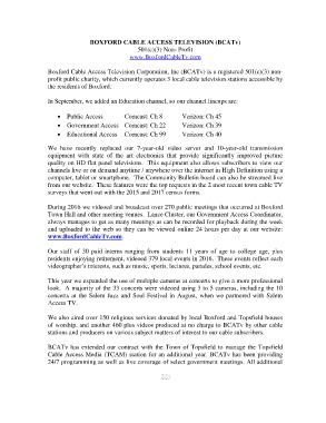 Boxford Cable Access Television Corporation, Inc (BCATv) is a registered 501(c)(3) non-