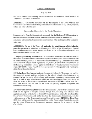2) Printing Revolving Account under the direction of the Board of Selectmen and used for