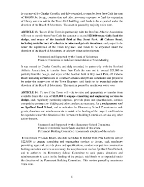 direction of the Board of Selectmen. This motion passed by unanimous voice vote.