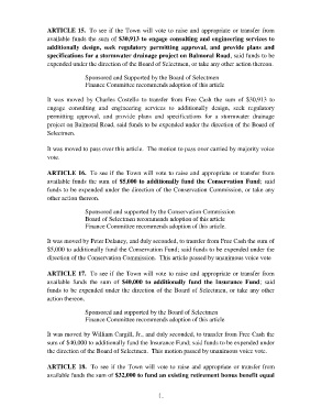 ARTICLE 15. To see if the Town will vote to raise and appropriate or transfer from