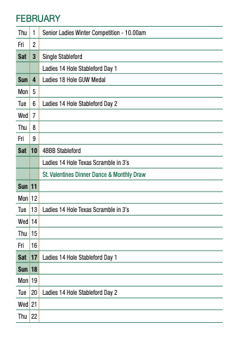 Thu Senior Ladies Winter Competition - 10.00am Fri