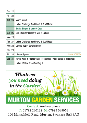 Tue Ladies Challenge Bowl Day 2 & GUW Medal Wed Seniors Dudley Schofield Cup