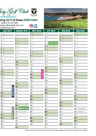 Dates correct at time of printing, please visit www.langlandbaygolfclub.com for confirmation and full details.