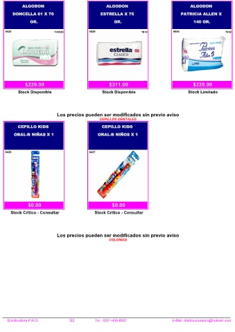 Distribuidora P.R.O. 122 Tel.: 0351-458-8927 E-Mail: distribuidorapro@hotmail.com