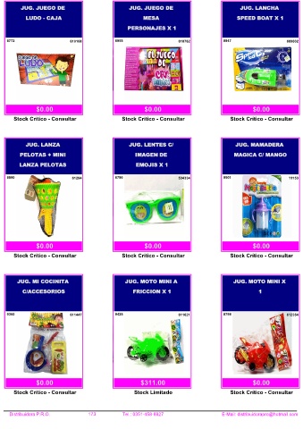Distribuidora P.R.O. 173 Tel.: 0351-458-8927 E-Mail: distribuidorapro@hotmail.com