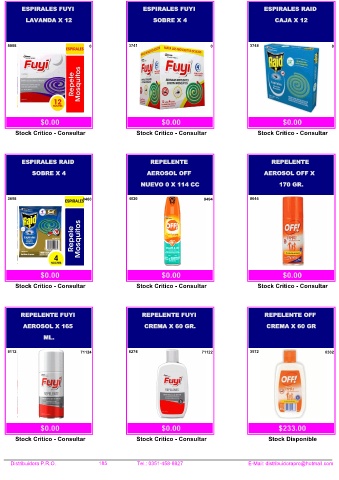 Distribuidora P.R.O. 185 Tel.: 0351-458-8927 E-Mail: distribuidorapro@hotmail.com