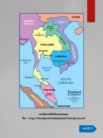 แผนที่ประเทศไทยในเขตพรมแดน ที่มา : https://kanokporn34andchutima35.wordpress.com หน้าที่ 5