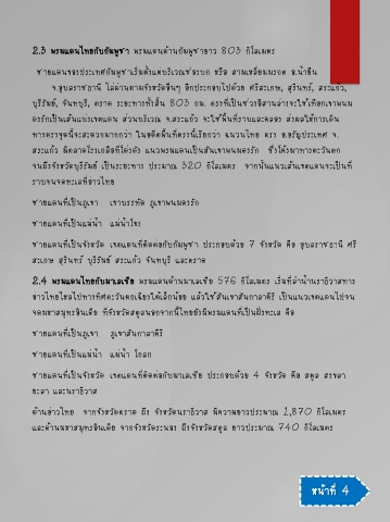 2.4 พรมแดนไทยกับมาเลเซีย พรมแดนด้านมาเลเซีย 576 กิโลเมตร เริ่มที่ล าน้ านราธิวาสทาง