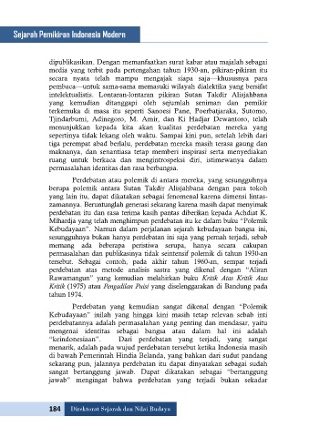 berupa polemik antara Sutan Takdir Alisjahbana dengan para tokoh