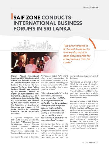 the SAIF ZONE delegation liaised because of the tax advantages, received positive response from regions. The forum titled ‘Taking Lanka is a positive sign of rapid incentives and infrastructure,” he