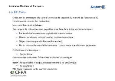 Les P&I Clubs les par Créés Fonctionnent membres leurs rappels Des Racines Navires Sièges du Fin Prééminence clauses loi : NOTA Clubs P&I
