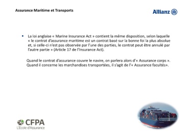 Act). et, si celle-ci n’est pas observée par l’une des parties, le contrat peut être annulé par Quand le contrat d’assurance couvre le navire, on parlera alors d’« Assurance corps