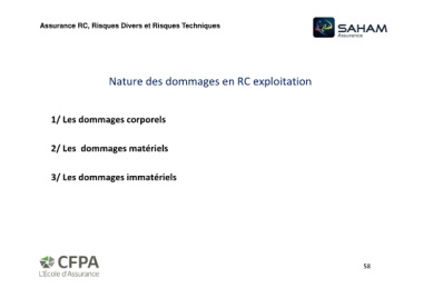 58 Nature des dommages en RC exploitation Assurance RC, Risques Divers et Risques Techniques corporels matériels immatériels dommages dommages dommages Les Les Les 1/ 2/ 3/