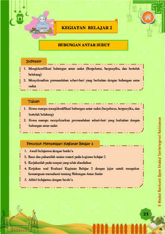 1. Siswa mampu mengidentifikasi hubungan antar sudut (berpelurus, berpenyiku, dan