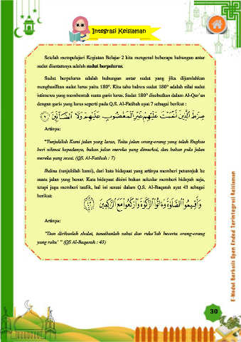 istimewa yang membentuk suatu garis lurus. Sudut 180° disebutkan dalam Al-Qur’an