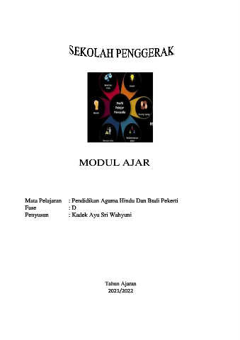 MODUL AJAR Mata Pelajaran : Pendidikan Agama Hindu Dan Budi Pekerti Fase : D Penyusun : Kadek Ayu Sri Wahyuni Tahun Ajaran 2021/2022