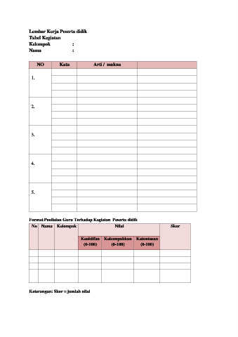 Format Penilaian Guru Terhadap Kegiatan Peserta didik
