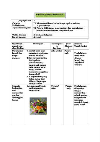 Capaian 7.1 Memahami bentuk dan fungsi upakara dalam