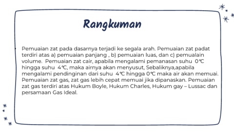 terdiri atas a) pemuaian panjang , b) pemuaian luas, dan c) pemualain