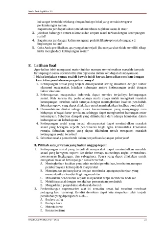 1. Ketimpangan sosial yang terjadi di masyarakat dapat menimbulkan masalah