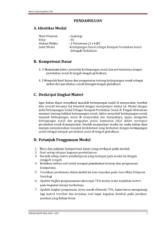 Judul Modul : Ketimpangan Sosial sebagai Dampak Perubahan Sosial