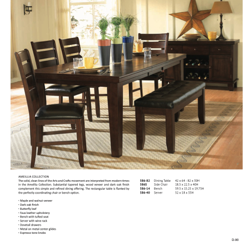 586-82 Dining Table 586S Side Chair 586-14 Bench 586-40 Server