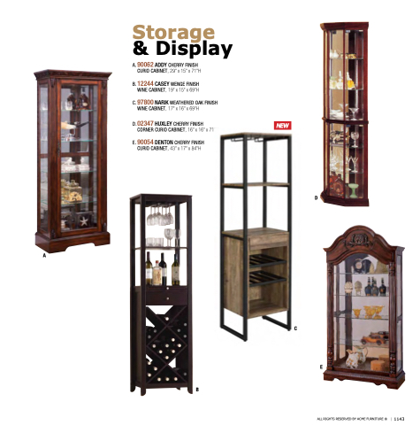 E. 90054 DENTON CHERRY FINISH CURIO CABINET, 43” x 17” x 84”H