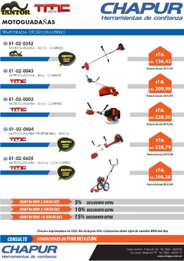 Precios expresadon en U$S. No incluyen IVA. Cotizacion dolar tipo de cambio BNA del dia.