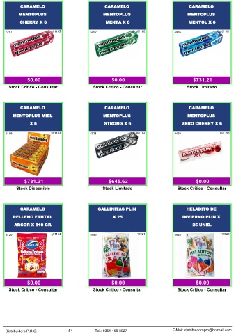 Distribuidora P.R.O. 54 Tel.: 0351-458-8927 E-Mail: distribuidorapro@hotmail.com