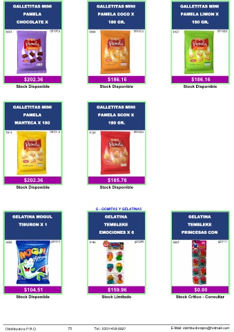 Distribuidora P.R.O. 75 Tel.: 0351-458-8927 E-Mail: distribuidorapro@hotmail.com