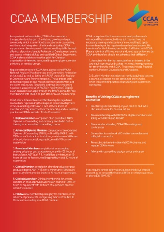 supports members to grow in their counselling skills through therefore offer the following two levels of affiliation with CCAA.