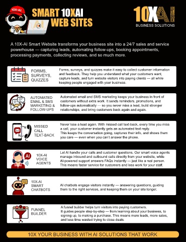 A 10X-AI Smart Website transforms your business site into a 24/7 sales and service