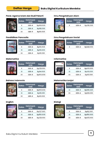 Daftar Harga Buku Digital Kurikulum Merdeka