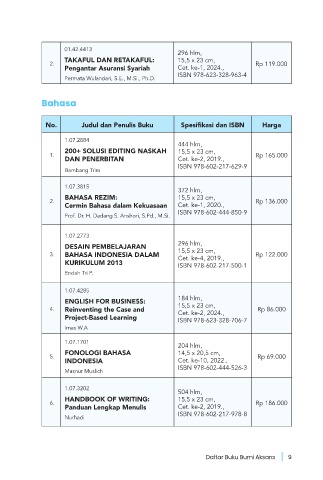 No. Judul dan Penulis Buku Spesifikasi dan ISBN Harga