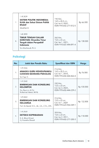No. Judul dan Penulis Buku Spesifikasi dan ISBN Harga